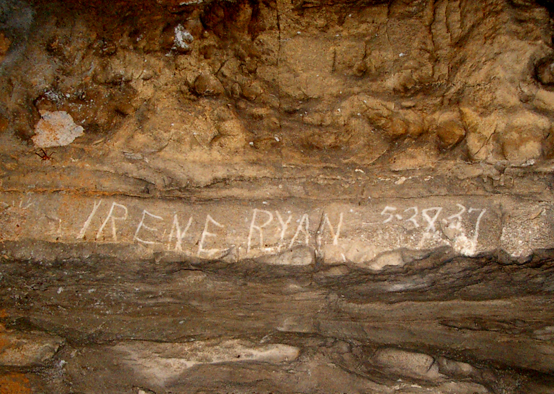 Inscription, Irene Ryan (Granny of the original TV Beverly Hillbillies), on rock deep inside Mammouth Cave.