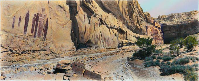Great gallery ghostly pictographs, Horseshoe Canyon, Canyonlands National park, Utah. Culture: Fremont/Barrier Canyon