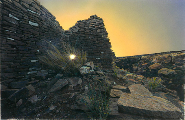 Hovenweep, Colorado. Equinox sunset through sight hole in wall.